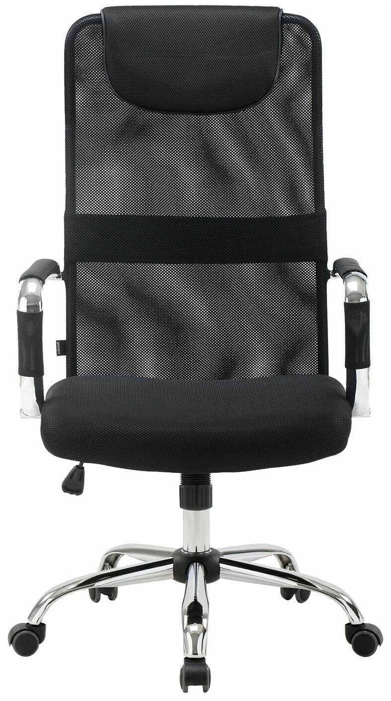 - + обычное офисное кресло, крепкое (металлические подлокотники и крестовина), удобное, под рост 178 см подголовника хватает, колеса прорезиненные.