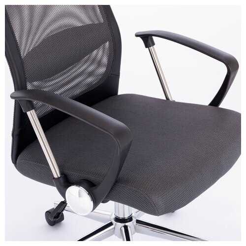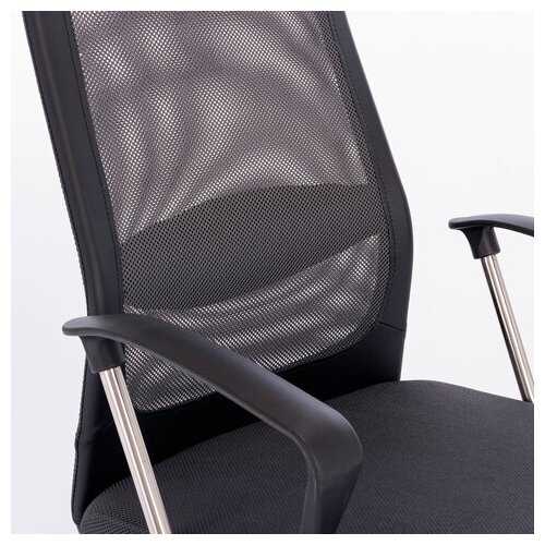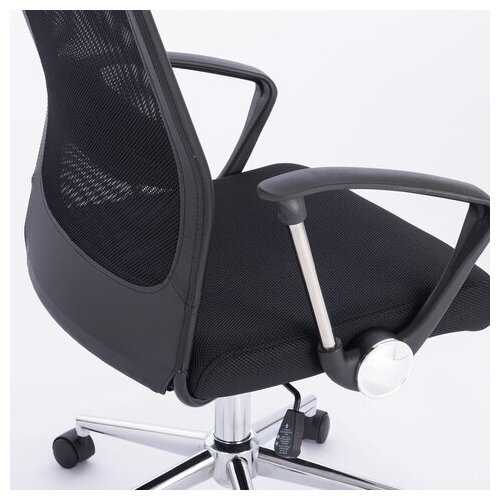 Хорошее удобное кресло для офиса и дома. У него удобная высокая спинка, поэтому на нем комфортно сидеть. Сверху есть мягкий подголовник. Это кресло также имеет пластиковые подлокотники, которые не гнуться и прочно держатся. Кресло на колесиках, которые не царапают ламинат и паркет. Есть механизм качания, чтобы расслабиться. Удобная регулировка высоты сидения, она очень плавно опускает и поднимает сидение