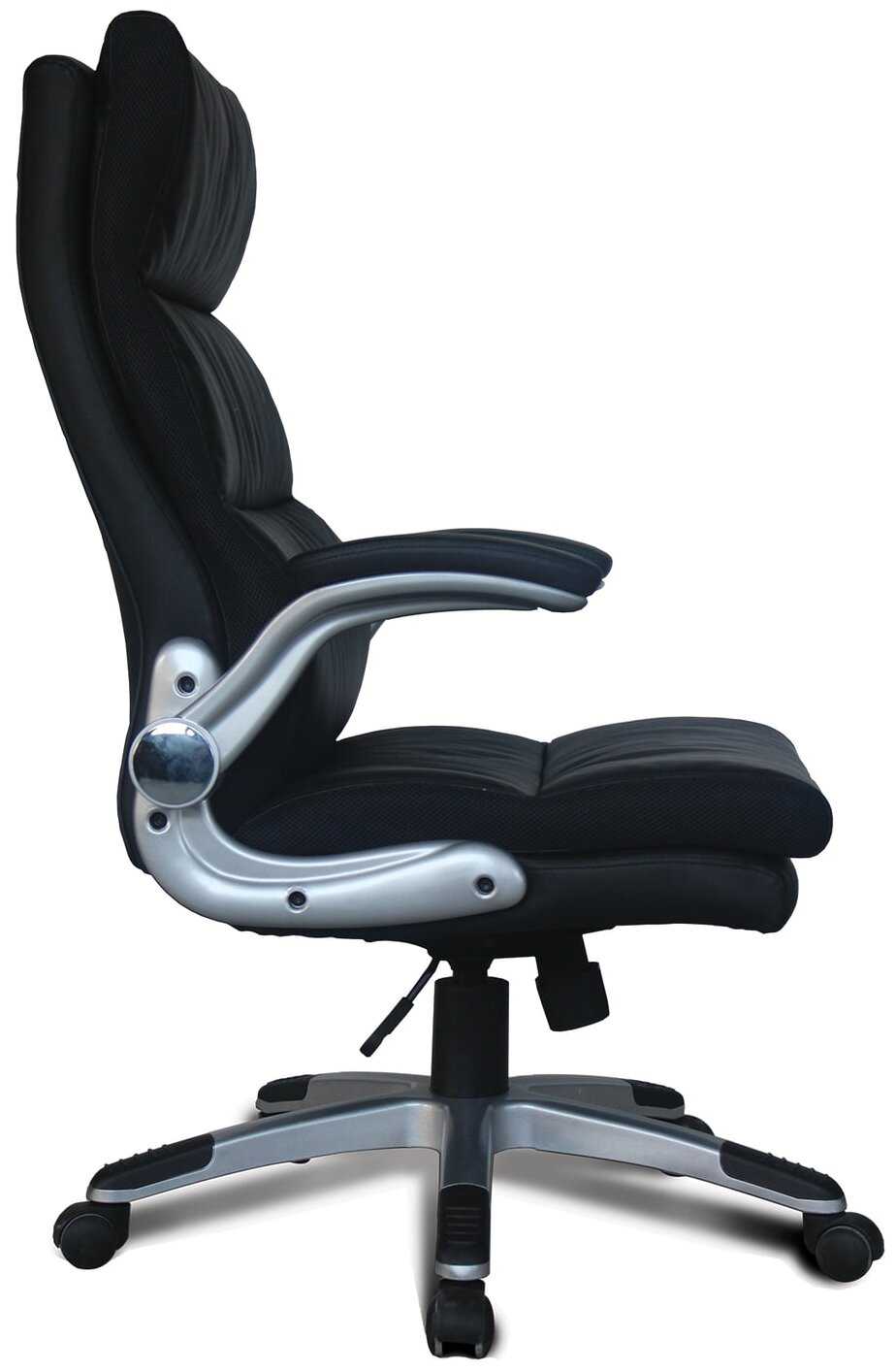- + - очень качественный материал покрытия (Рециклированная кожа), который за пол года постоянного использования нигде даже не начинает рваться. Плюс в летнее время кожа к нему не прилипает и даже не сильно потеет (девушки меня поймут), сидишь как будто на натуральной коже. - подходит для невысоких людей (мой рост 167 см, многие другие кресла по спинке мне были очень высокими) - прочная увесистая конструкция - удобные подлокотники, которые можно приподнять или убрать вообще - удобный мягкий подголовник, который можно "смять" под себя как удобно, это что-то вроде подушки, пришитой к жесткому основанию спинки - мягкое и просторное сиденье (я любитель закинуть ноги на кресло или сесть в позу лотоса, и для этого тут много места, так же это будет удобно полным людям) - приятный внешний вид