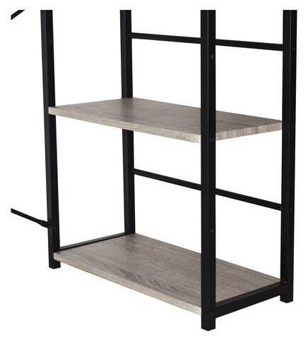 - Полки можно размещать слева или справа, менять высоту и местами с металлическими перекладинами.