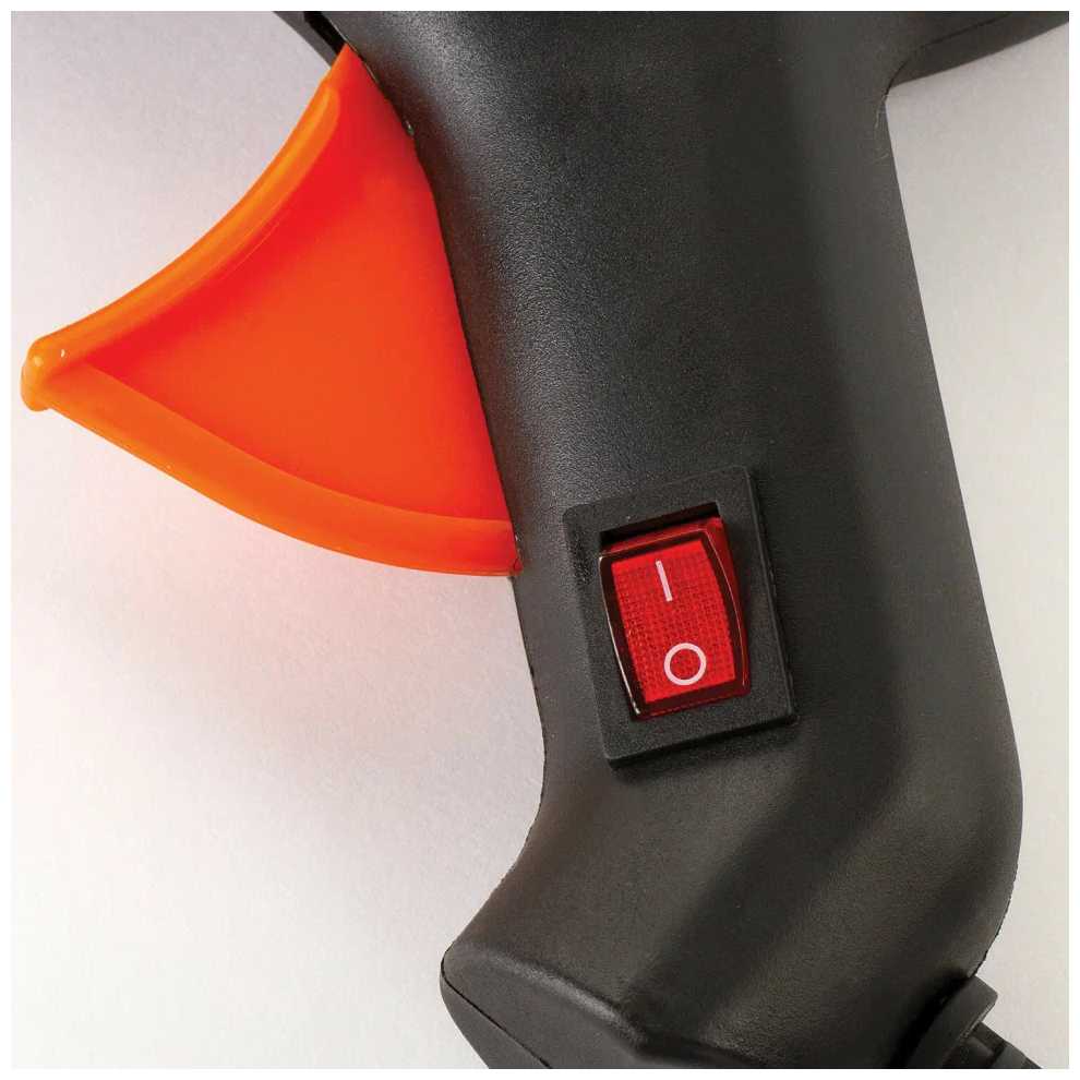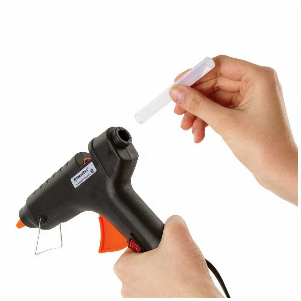 удобный пистолет, прогрев порядка 5 минут до рабочего состояния. в комплекте два стержня, но такое ощущение как коротковаты они чтобы нормально работать с одним приходится заряжать сразу второй. положительный момент что есть кнопка в круг и выкл на рукоятке, также хорошо что есть подставка встроенная в корпус пистолета но перевести подставку из стационарного в рабочее состояние одной рукой не получится, слишком упористый угол перезавода.