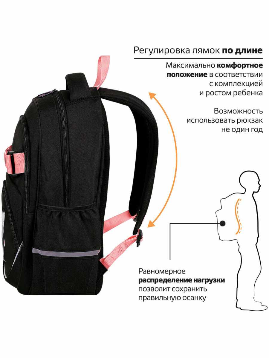 - + ребенок ходит с сентября в школу с ним каждый день, все держится крепко. отличный рюкзак. папки а4 спокойно помещаются