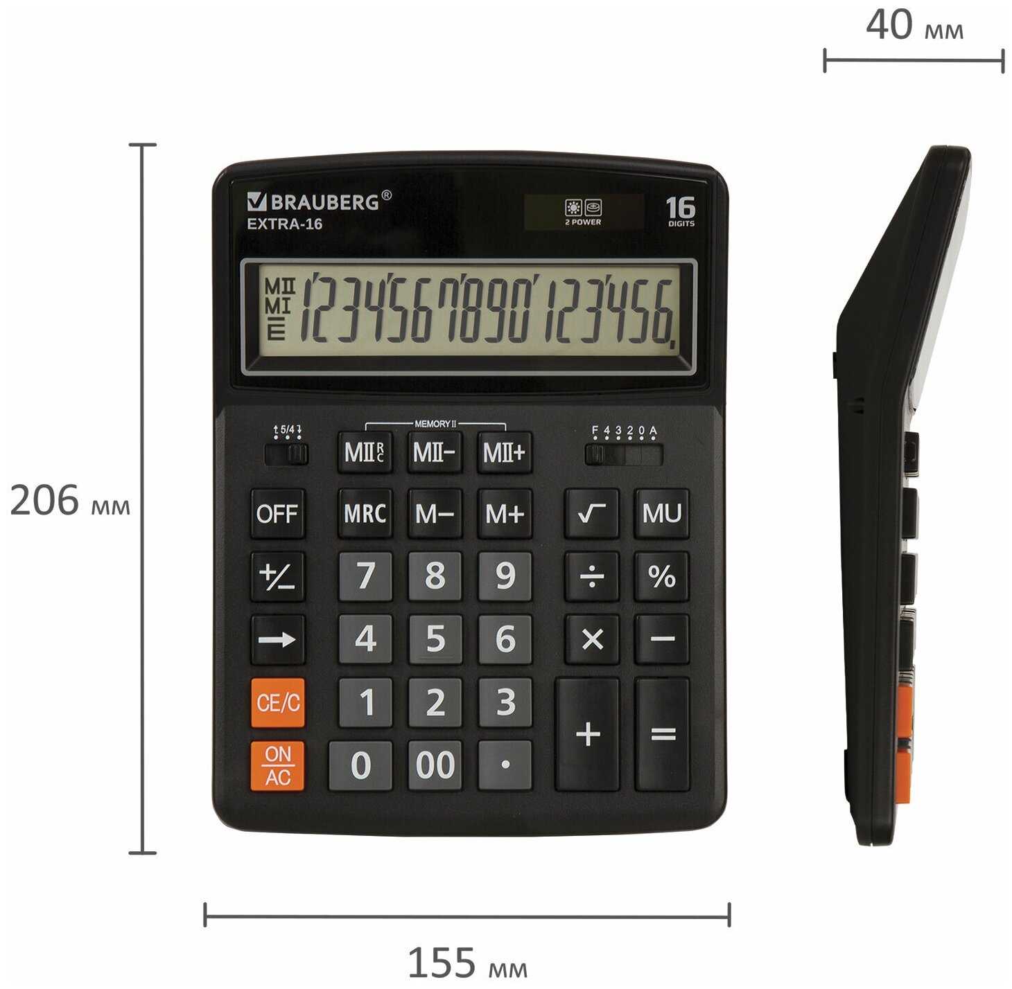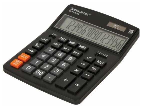 23 отзывов пользователей o BRAUBERG EXTRA-16-BK (206x155 мм), 16 разрядов, двойное питание, черный, 250475