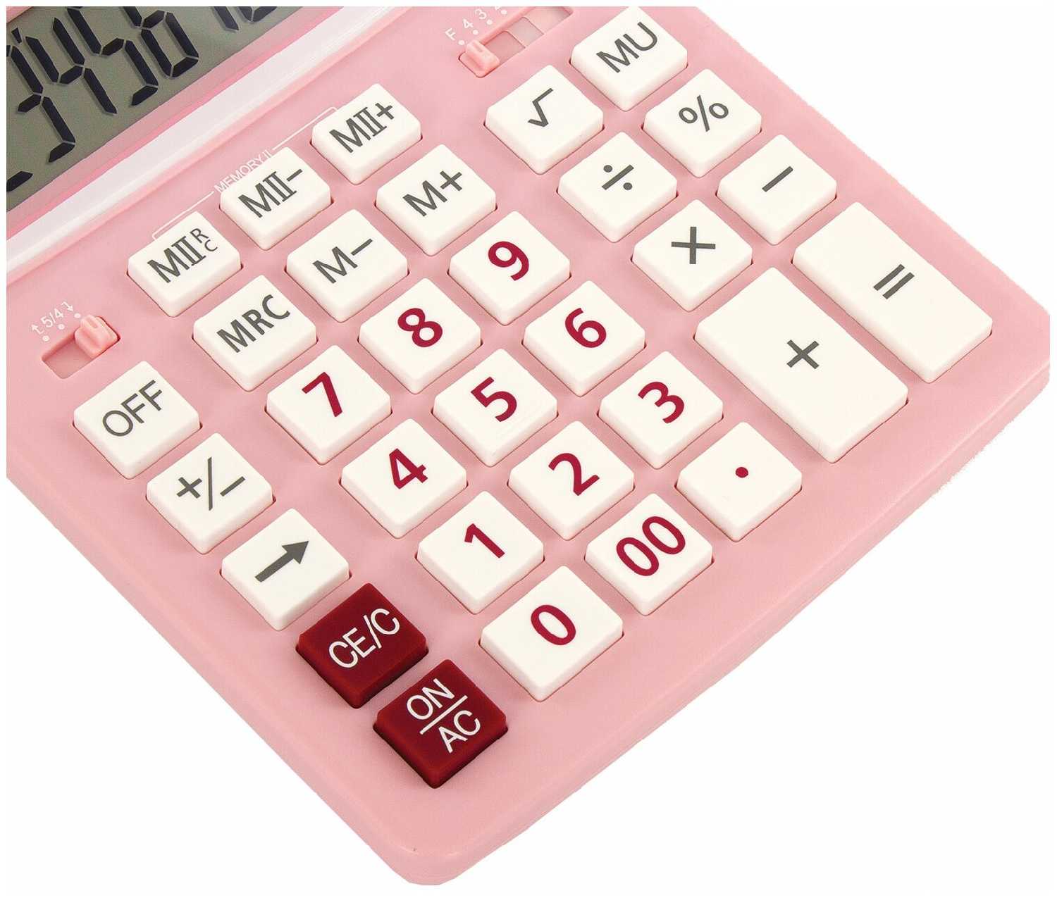 Хороший калькулятор, кнопки большие. Цвет нежно-розовый. Есть кнопка выключения. Удобно пользоваться. Пришел в фирменной коробке. Имеются инструкция и гарантийный талон.