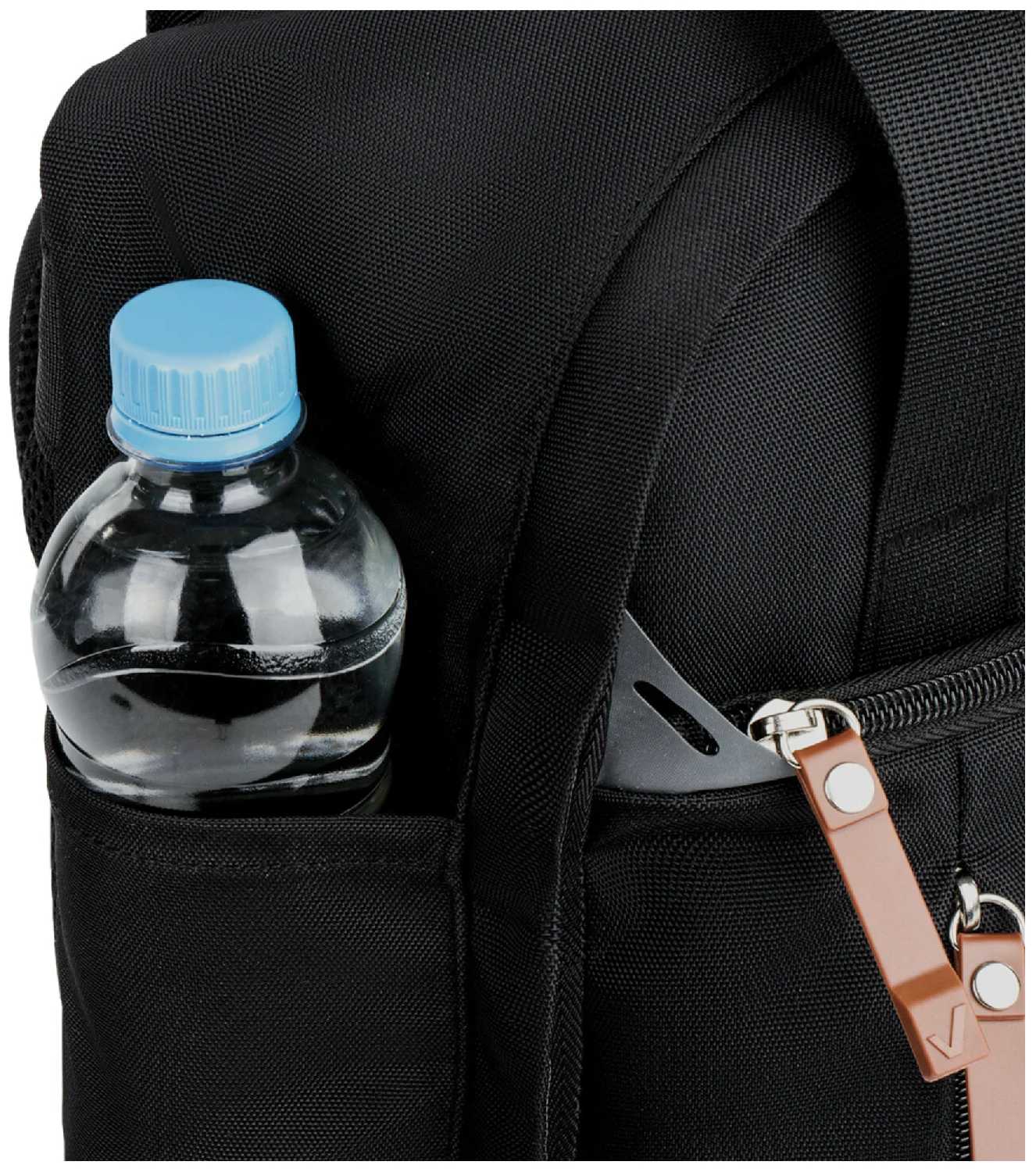 - - внешний карман для бутылочки или зонта слева, неудобно вынимать