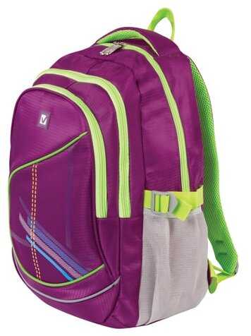 Рюкзак BRAUBERG LIGHT розовый удобен при носке имеет эргономичную спинку. Большой : ширина 310 мм; высота 470 мм; длина 130 мм; вес 720 г. Фурнитура хорошего качества, легко регулируется длина тесемок. На передней стенке рюкзака имеются 3 внешних кармана, что облегчает хранение нужных вещей. Два основных вместительных кармана, второй карман имеет дополнительное отделение. Имеется карман для бутылки и еще дополнительный потайной карман на спинке рюкзака. Пошит рюкзак аккуратно. Выбрала этот рюкзак из-за размера для моего ноутбука.