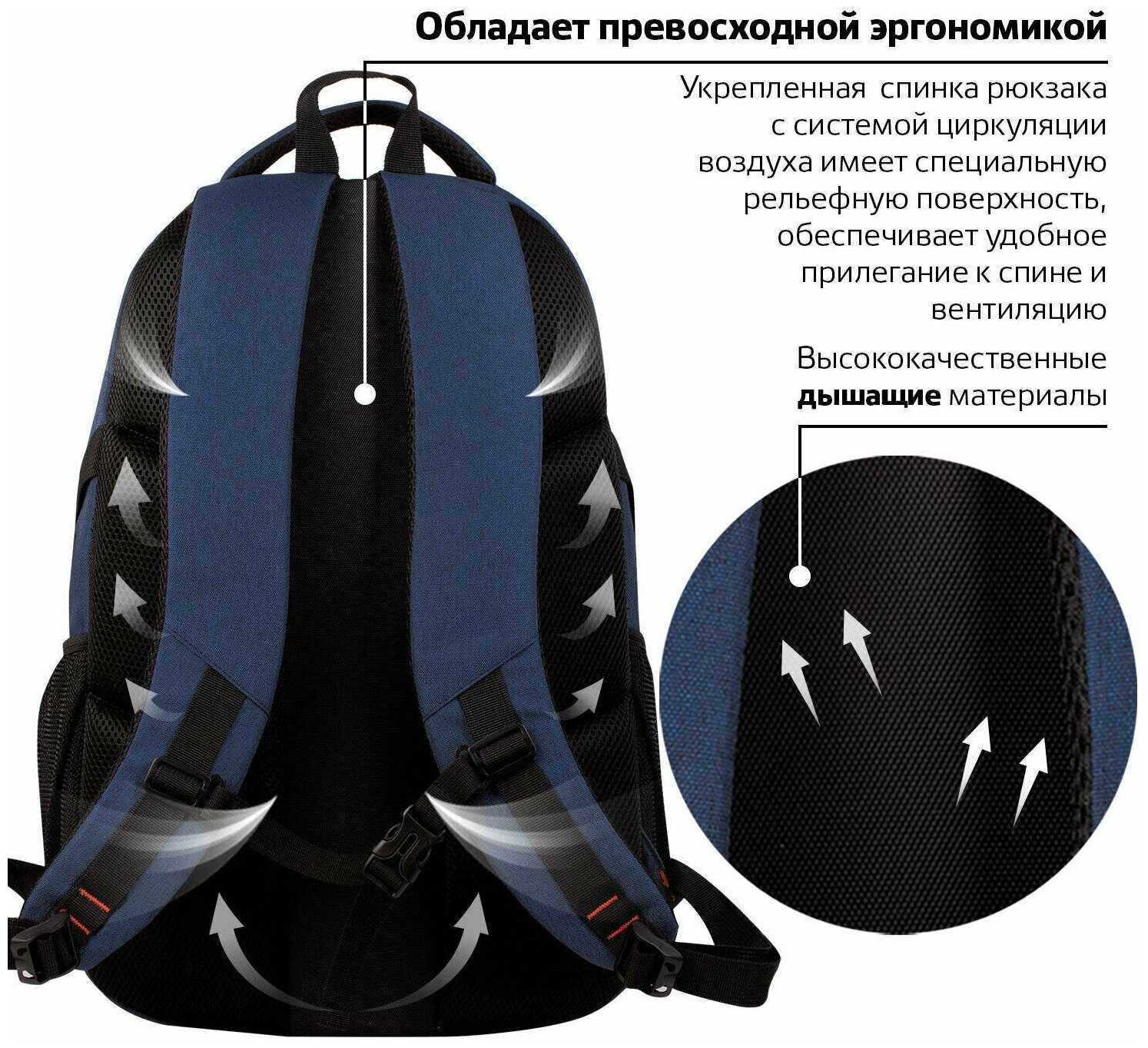 + Спинка и регулируемые лямки имеют хорошую дышащую набивку. Вертикально посередине спинки идёт как бы воздуховод, дополнительно улучшающий вентиляцию;