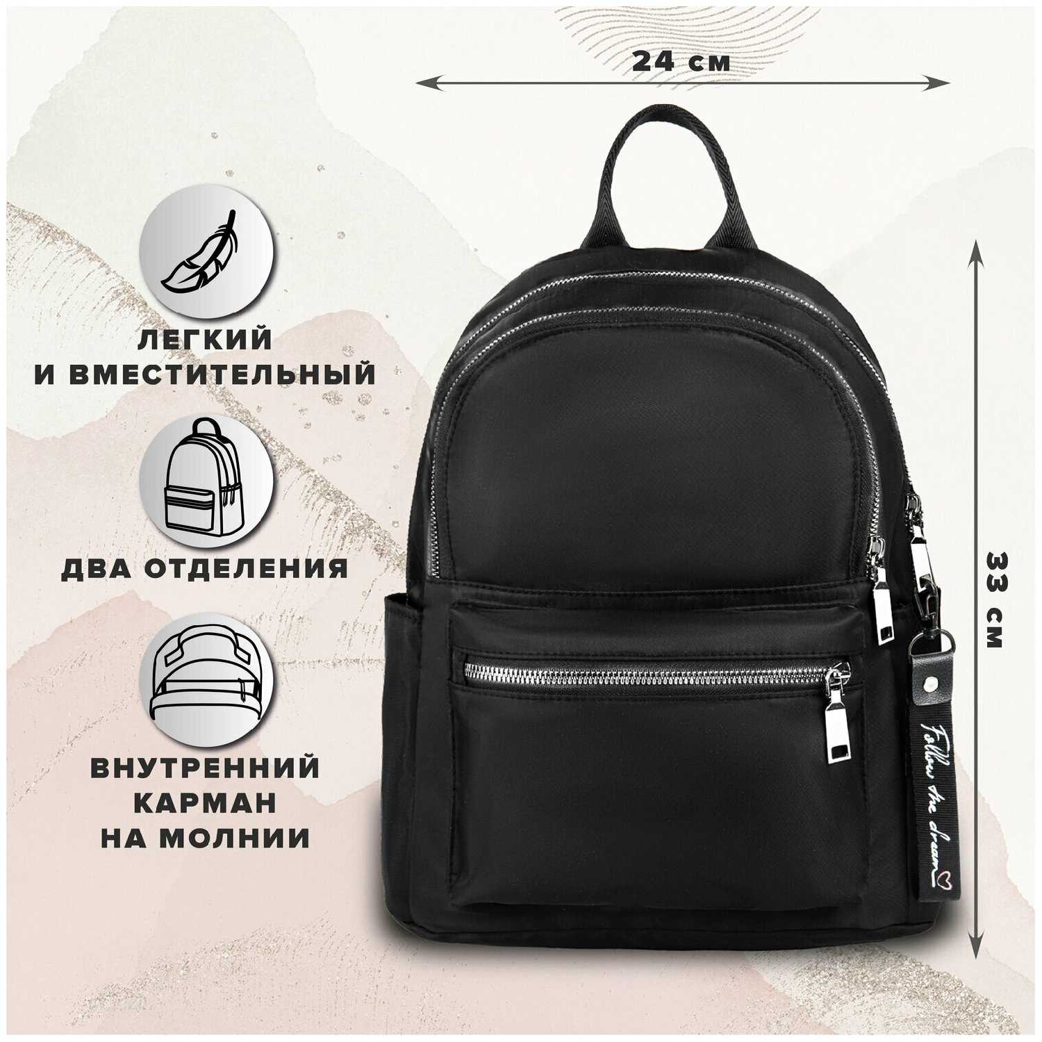 - + Маленький, как альтернатива дамской сумки, сшит из ткани, без наполнения форму не держит, крепкий, красивый, молнии очень красивые блестящие металлические, красивый рюкзачок и практичный
