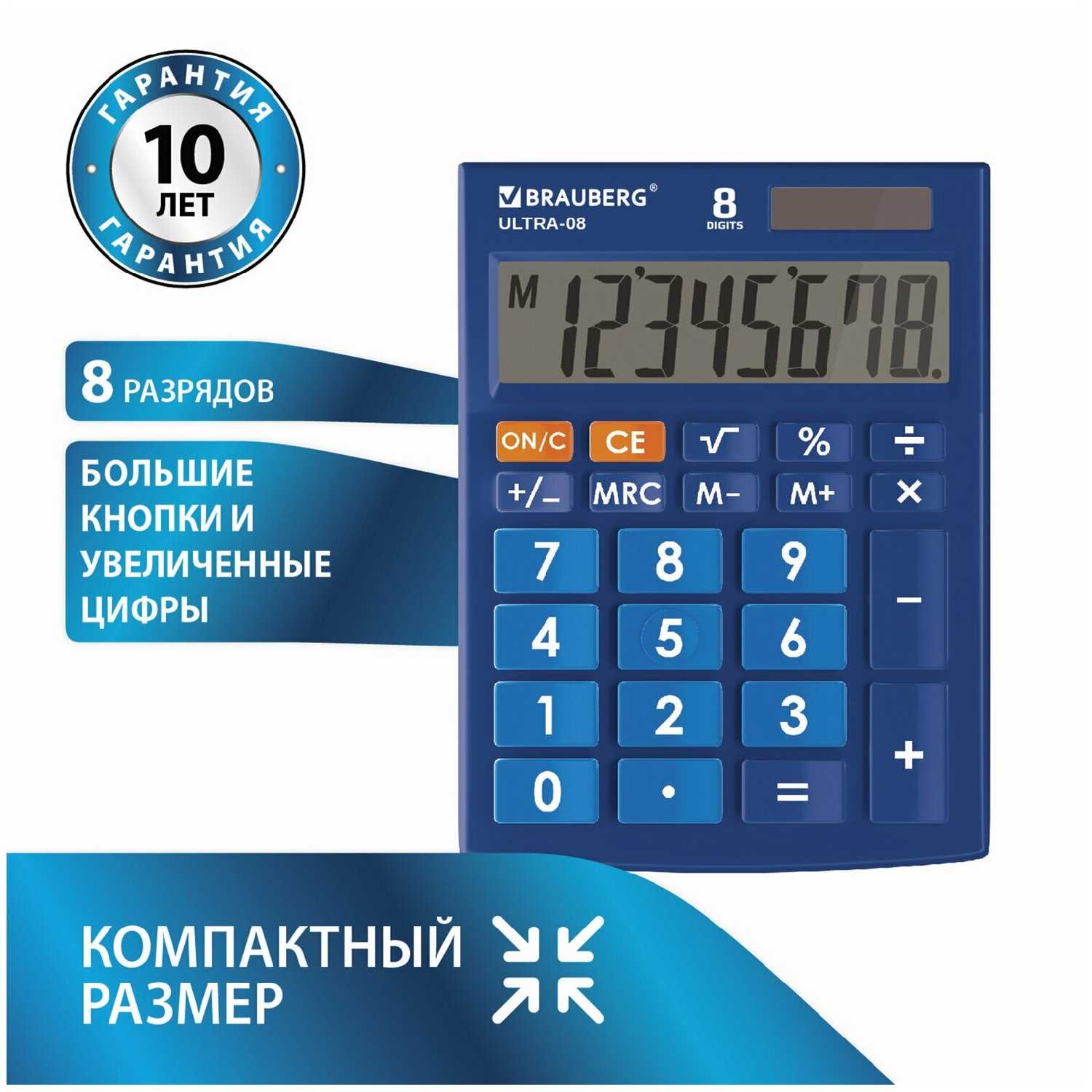 Отзывы о Калькулятор Brauberg Ultra-08-BU (154x115 мм, 8 разрядов, двойное питание)