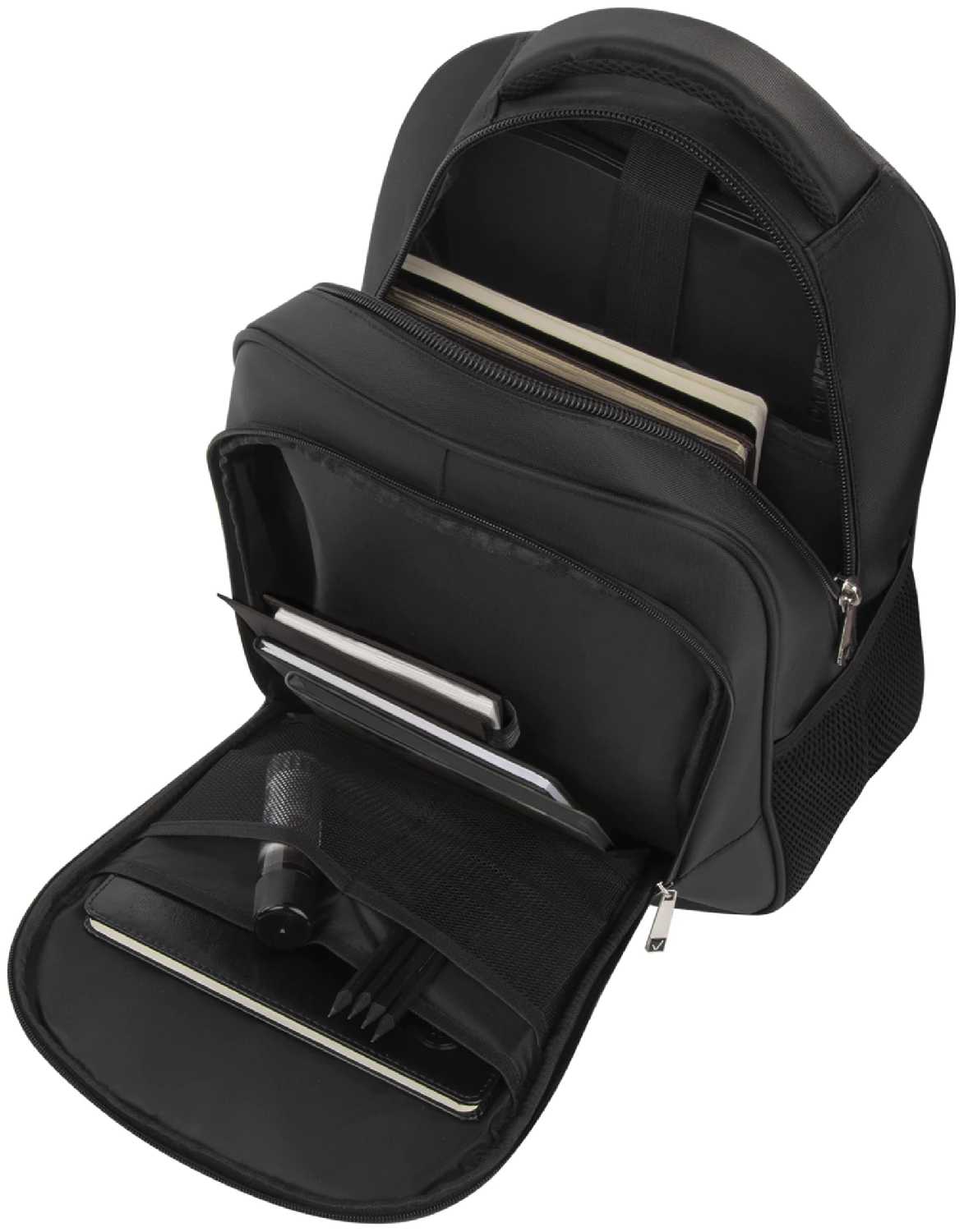 - Основное отделение вмещает 17-дюймовый ноутбук с защитным чехлом.