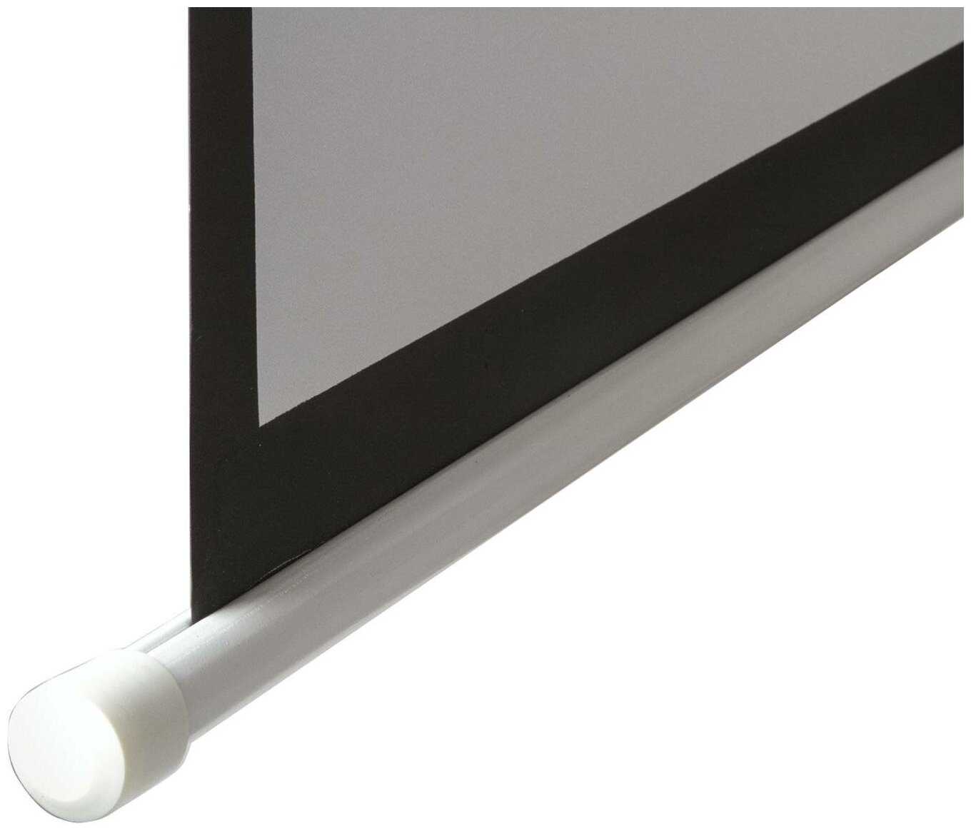 Не пожалела, что выбрала такой экран. При монтаже не пришлось ничего докупать, как это было в прошлый раз. Просто повесили на два самореза на стену. Главное, размер шляпки подобрать. В теории, можно купить крючки и повесить на потолок. За счет своих габаритов не занимает много места на стене. Если нужно поместится даже в углу комнаты. Полотно экрана очень качественное и прочное, даже не думала, что оно будет таким. Не просвечивает обои под стеной. Тыльная сторона темная. Легко выдвигается вниз за шнурочек. Фиксируется надежно и обратно не сматывается сам по себе. Корпус относительно экрана больше примерно на 5 см с каждой стороны.