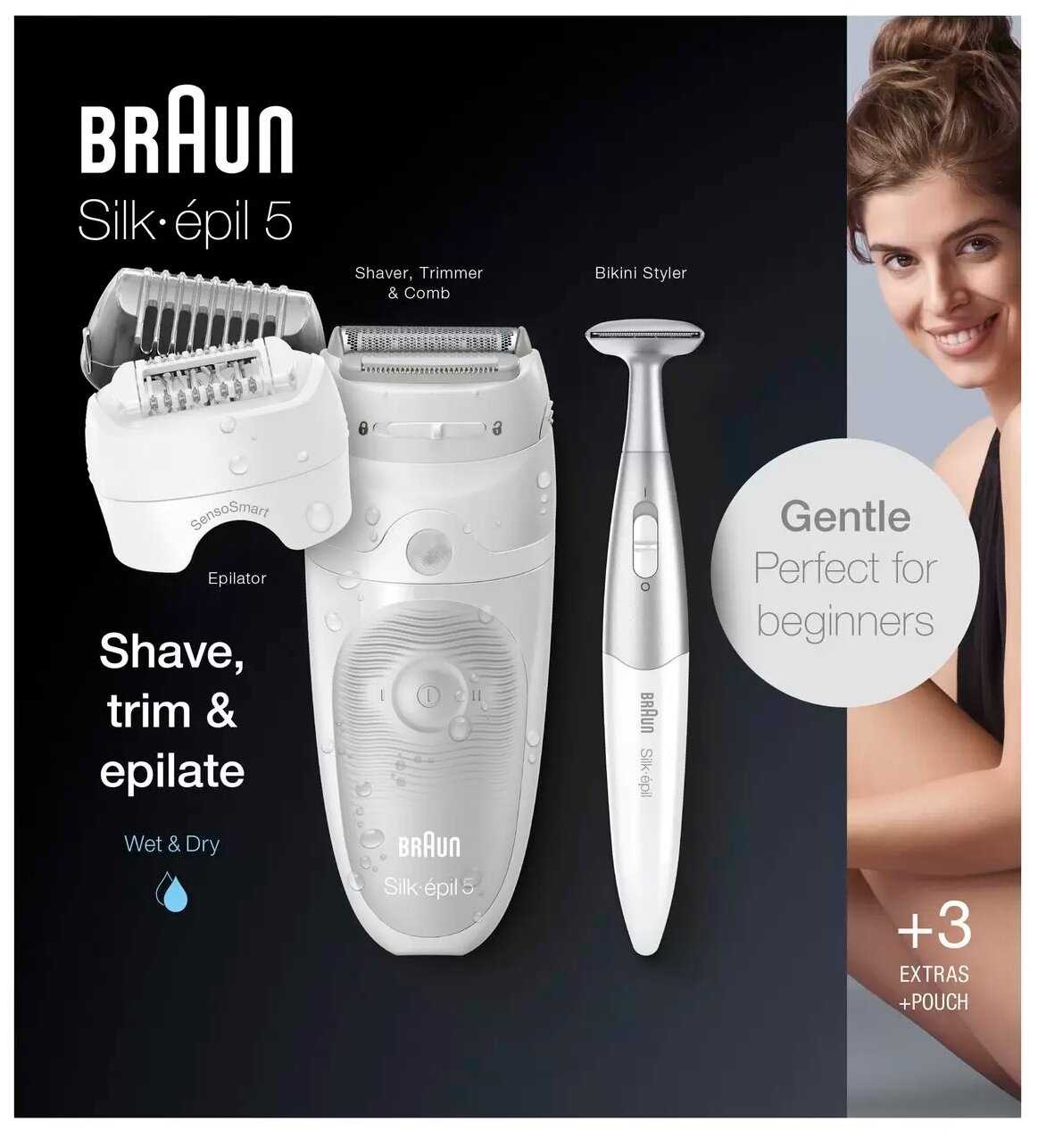 Эпилятор Braun SES 5-805 полностью оправдал ожидания. Им удобно пользоваться и на сухой коже, и с водой, быстро заряжается, долго держит заряд. Форма эргономичная, в руке лежит удобно. Эпиляция не доставляет особого дискомфорта. Есть датчик контакта с кожей и 4 насадки. Плюс триммер, щеточка для очистки и чехол, в котором все детали удобно хранить и брать с собой в поездки. Кожа после эпиляции гладкая, без покраснений и повреждений. Эпилятор купила с большой скидкой, ещё и смогла использовать бонусные баллы. Покупкой очень довольна.
