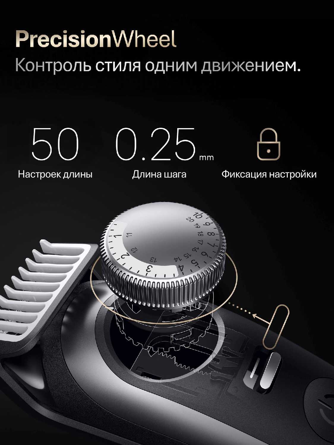 - - Насадка-шейвер традиционно никакая: одно раздражение, не сбривает нифига. Карточка товара - вранье, нет подставки для зарядки. На первом миллиметре шаг регулировки - 0.5