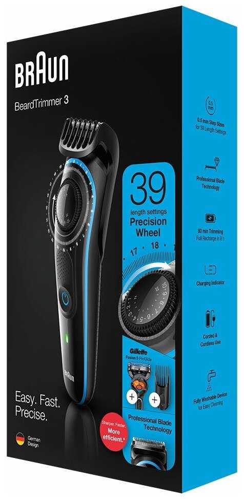 Выбирал между данной моделью и Braun BT 3041, которая на 500р дешевле была. В основном разница только во времени зарядки и работы аккумулятора, что не критично. У данной модели параметры чуть лучше.