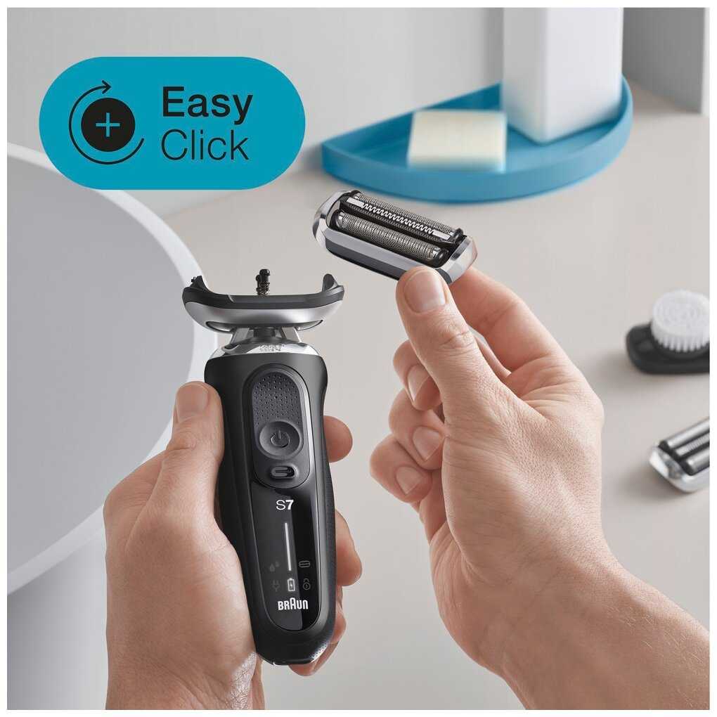 - Встроенный триммер предыдущих моделей Braun Series 7 заменен на съемный модуль.
