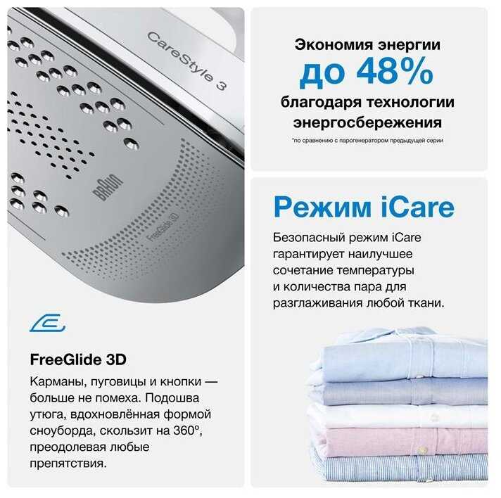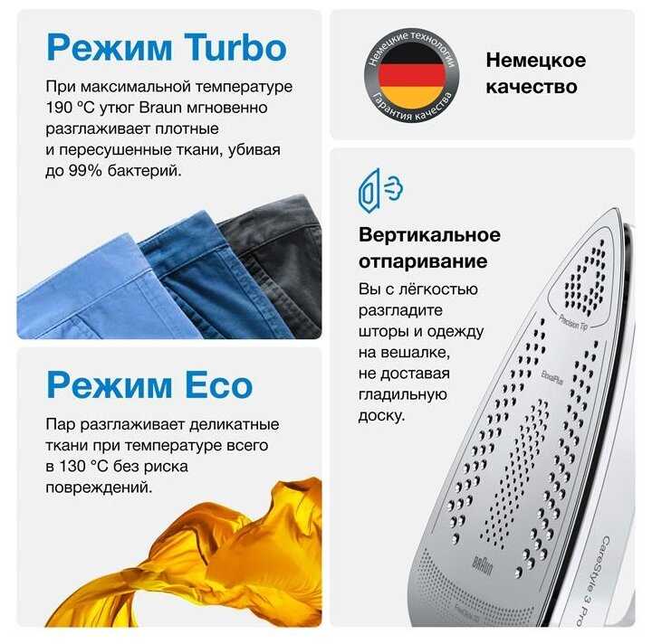 регулировка подачи пара, паровой удар, постоянная подача пара, система самоочистки, экорежим