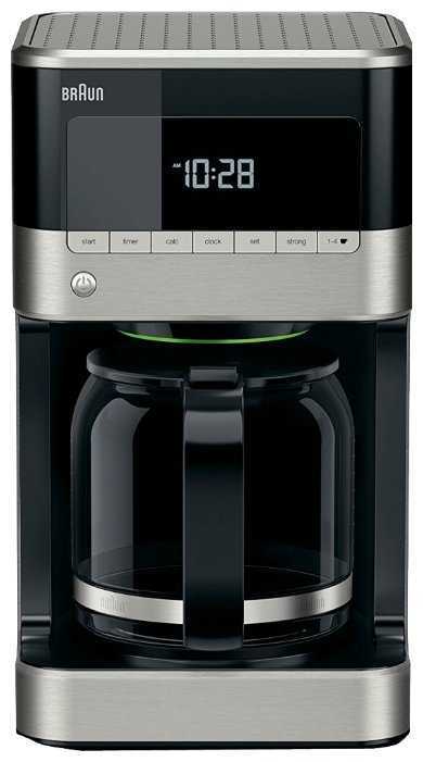 Купил на свой страх и риск так как не нашёл обзоров и отзывов в рунете.Расскажу о первых впечатлениях: В общем и целом производит впечатление добротной вещи. Выглядит стильно и дорого.Хорошо собрана,все детали подогнаны без крупных зазоров,ничего не скрипит и не люфтит.Помимо пластика (приятного как на глаз так и на ощупь) в отделке используется металл что придает прибору солидности.В кофеварке используются бумажные фильтры (многоразового в комплекте нет но можно купить фирменный или как альтернативу недорогой универсальный). Контроль уровня воды осуществляется при открытой крышке в правом верхнем углу при помощи \"ступенек\" с шагом на одну чашку (но не более 12). Лично мне было бы удобнее если бы было смотровое окошко или в идеале имелась индикация на дисплее.Кнопка питания имеет подсветку.Присутствует индикация режимов работы зелеными светодиодами.Имеется таймер при помощи которого можно задать время в которое кофеварка сварит кофе.Если прибор выключен то при включенном таймере самостоятельно включится.Можно выбрать жёсткость воды (три позиции) а также задать степень крепости кофе (два варианта). В кофеварке присутствует система автоматической декальцинации что продлевает срок службы агрегата а также противокапельная система.Есть режим приготовления 1-4 чашек.Объём стеклянной колбы (как и бака для воды) 12 чашек что примерно равно полутора литрам.Крышка колбы хлипкая,неподпружиненная. После цикла кипячения кофеварка переходит в режим подогрева,если не производить никаких действий в течении 40 минут то она отключается.Кофе получается очень вкусный.Рекомендую данный девайс к покупке.Надеюсь мой отзыв кому нибудь поможет с выбором)