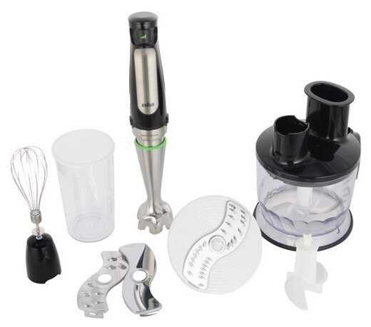 - Выдвижной механизм ножа в погружной насадке обеспечивает равномерную обработку продуктов.