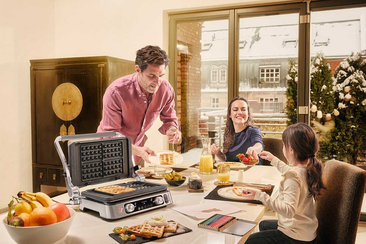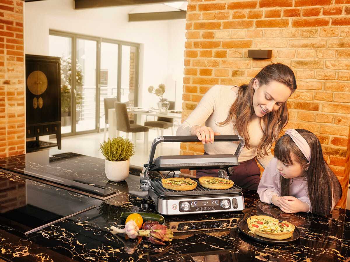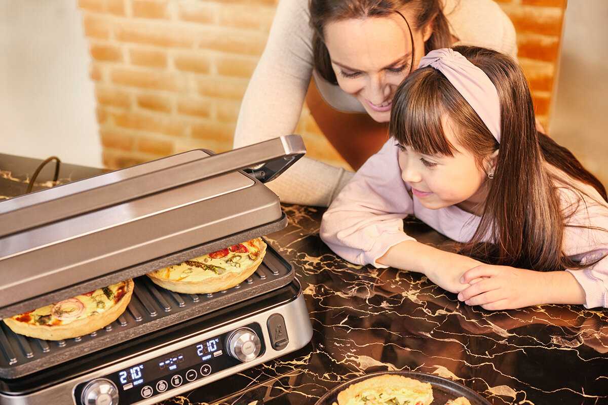 Абсолютно всё понравилось. Стоит не дёшево, но цена абсолютно оправдана. Разные насадки являются большим плюсом. Плоская, рельефная и вафельная - попробовали все и всё понравилось. Отдельного упоминания заслуживает рецепт шоколадных вафель из книги рецептов (приложения), сделав которые на насадке для вафель - не могли оторваться! Единственное, что нужно - всегда следить за детьми, т.к. разогрев до 260+ градусов при сильном режиме и 240 при обычном - может быть опасно. Но готовка на гриле обычно не более 15-20 минут, т.ч. это не проблема. Также он не самый лёгкий, т.ч. лучше для него найти стационарное место и держать его там, а не постоянно перемещать.