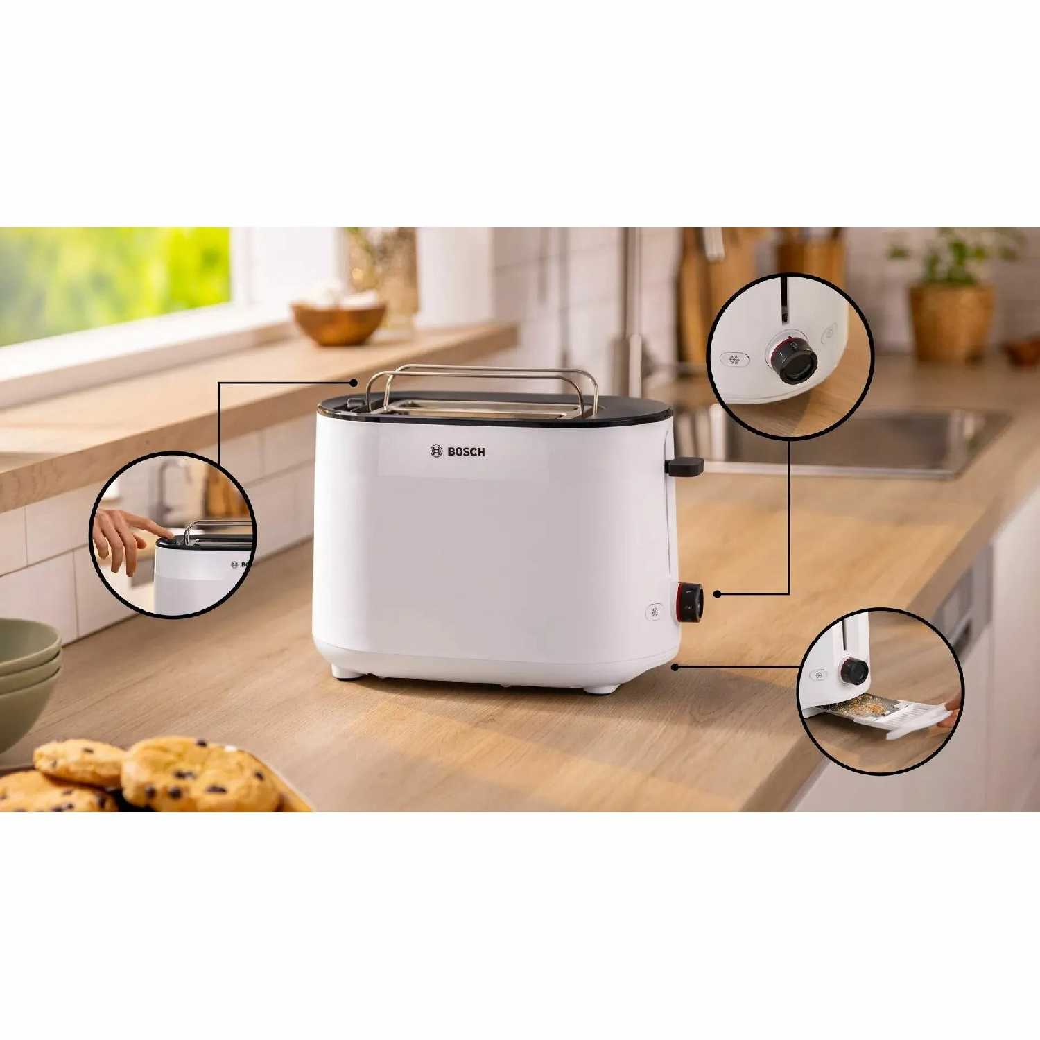 - + отличный и надёжный тостер. рекомендую к покупке. Bosch всегда на высоте. пользуюсь год, родственникам в подарок купил такой же.