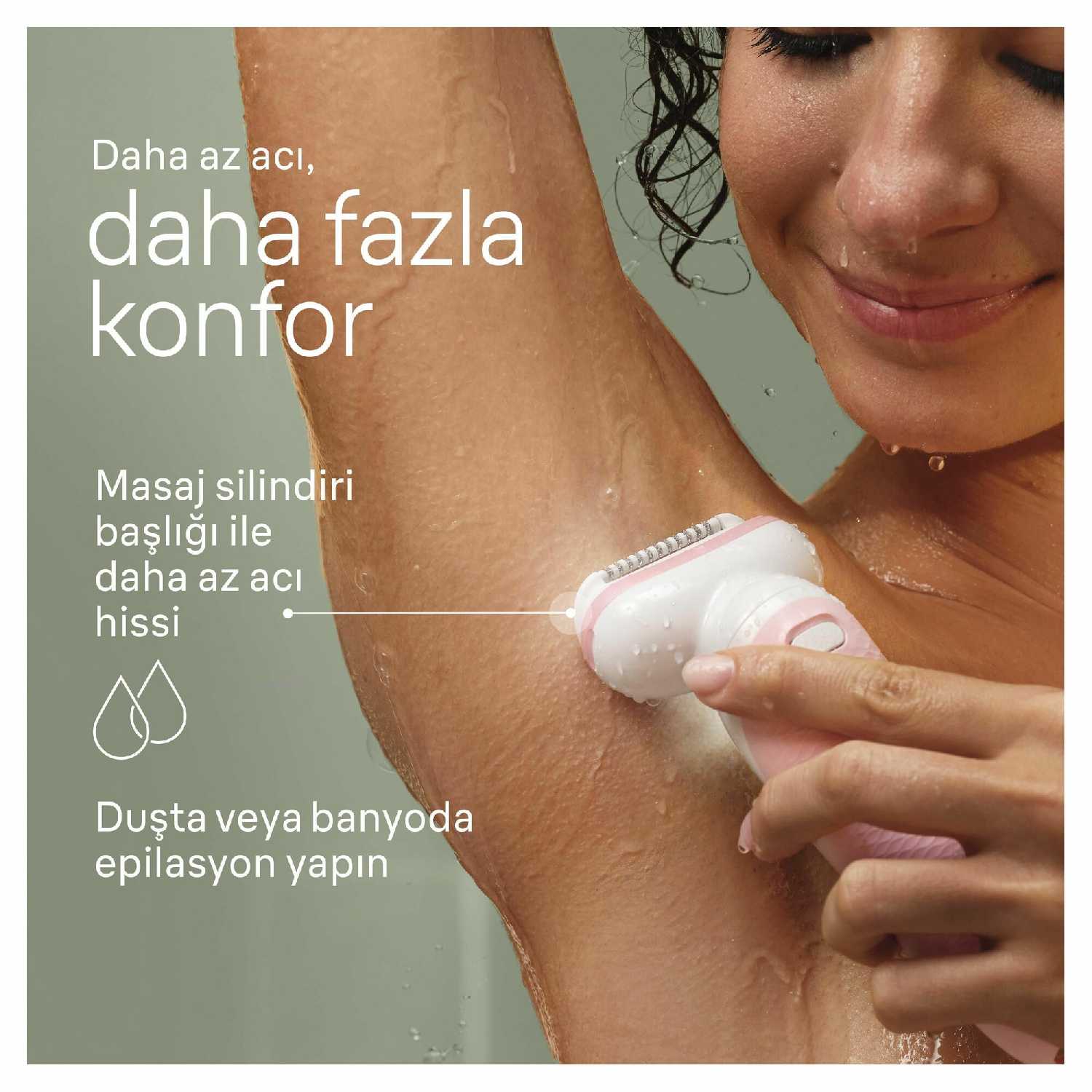 Эпилятор имеет влагозащищенный корпус (технология Wet&Dry), что позволяет комфортно использовать его прямо под струей воды в душе или в наполненной ванне. Пользователи отмечают, что эпиляция на распаренной коже становится гораздо менее болезненной. Эта функция также упрощает процесс очистки самого прибора после использования. -