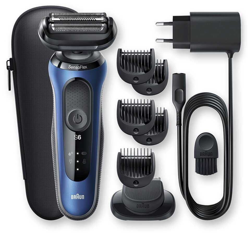 электробритва Braun Series 6, дорожный футляр, насадки-триммер для бороды, щеточка для чистки, зарядное устройство