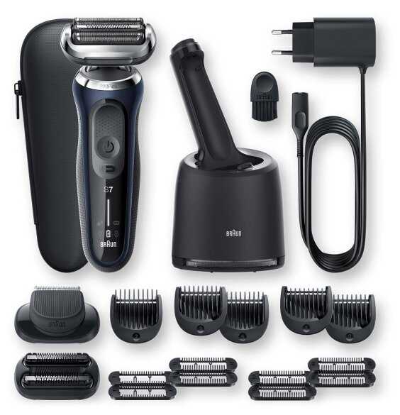 Электробритва Braun 70-B7850cc достаточно дорогая по цене, из-за многофункциональности, а также большого количества насадок - 11 штук.
