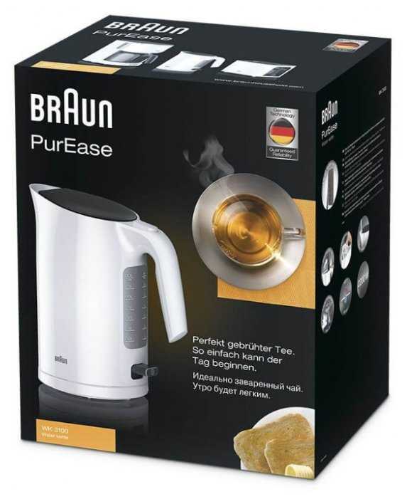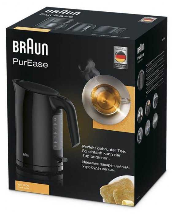 Выбрала чайник фирмы Braun, хотела надёжный и симпотичный вариант не за космические деньги. На него была скидка, купила за 2000 рублей. И не пожалела. Качество чайника очень порадовало, сборка хорошая пластик приличный, ничего не люфтит, не скрипит. Запахов никаких химических нет. Просто закипятила пару раз полный чайник и слила воду. Некоторые пишут что их смущает чёрный шнур. Не вижу в этом недостатка, так как это поддерживается чёрными крышкой и кнопкой на самом чайнике и смотрит довольно стильно. Чайник в целом выглядит достаточно солидно и дорого. Очень понравилось что быстро кипятит воду, на одну кружку греет секунд за 30. Довольно тихий не гремит как паровоз, как дешёвые чайники. Кнопка горит зелёным цветом, не сильно ярко, не раздражает.