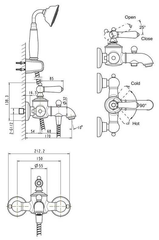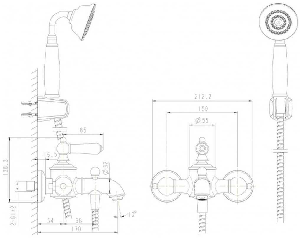 | @Комплектация : | смеситель, аэратор, душевой шланг, настенный держатель, душевая лейка, дивертор, накладки, эксцентрики, крепления, инструкция |