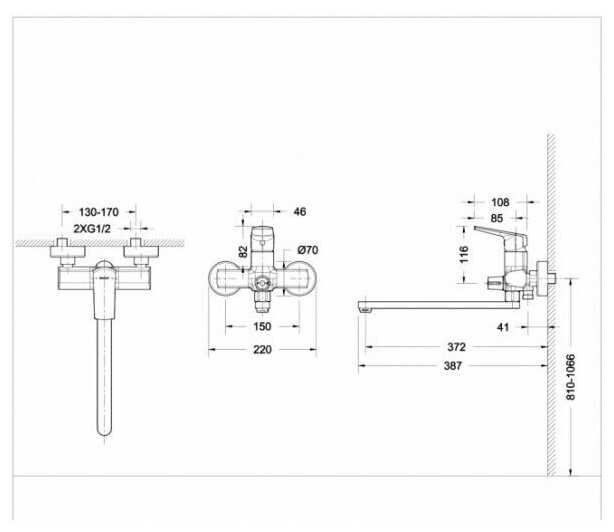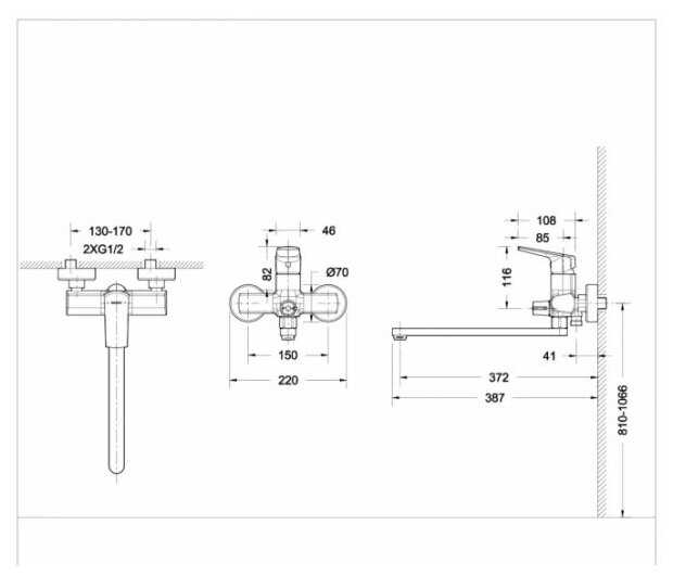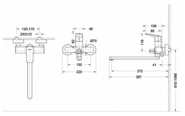 - длина излива: 372 мм.