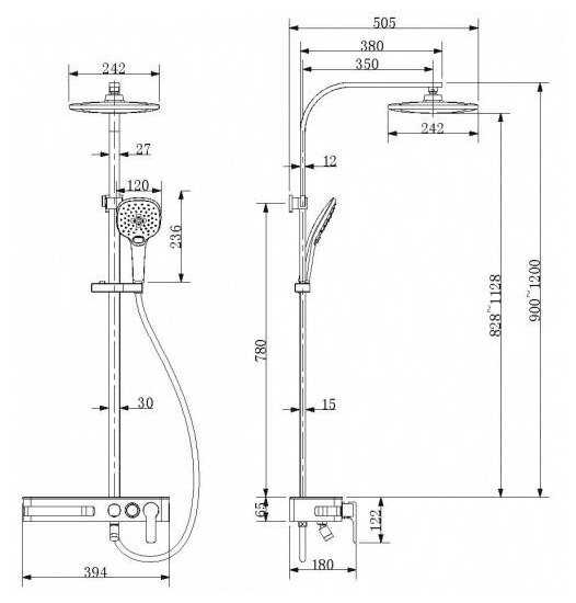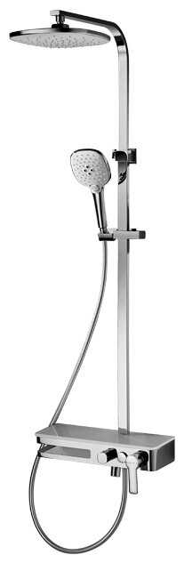 | Комплектация : | верхний душ, держатель лейки, душевая стойка, излив для набора воды, кронштейн для верхнего душа, лейка, ручной душ, смеситель, шланг |