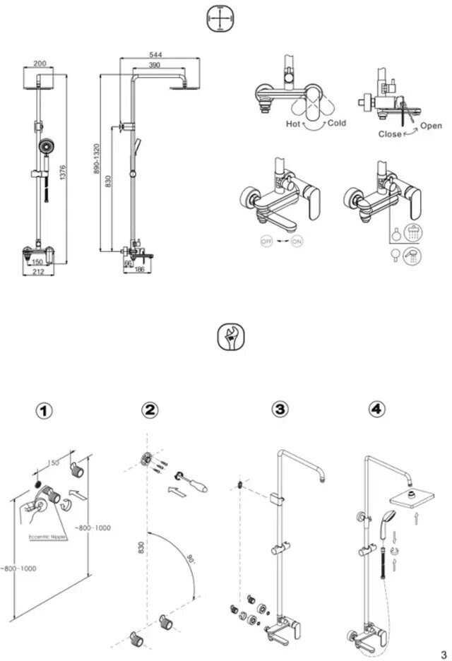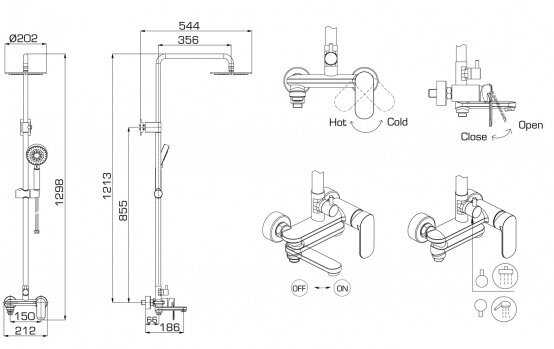 эксцентрик, лейка, шланг, держатель лейки, верхний душ, ручной душ, душевая стойка, смеситель, душевая штанга