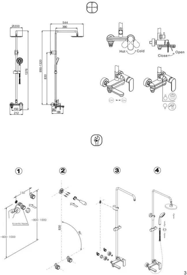 эксцентрик, лейка, шланг, держатель лейки, верхний душ, ручной душ, душевая стойка, смеситель, душевая штанга