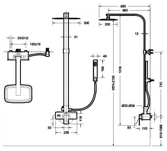 | Высота стойки для душа : | 1218 мм |