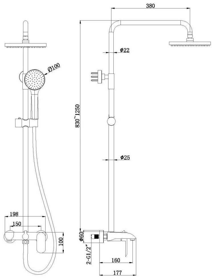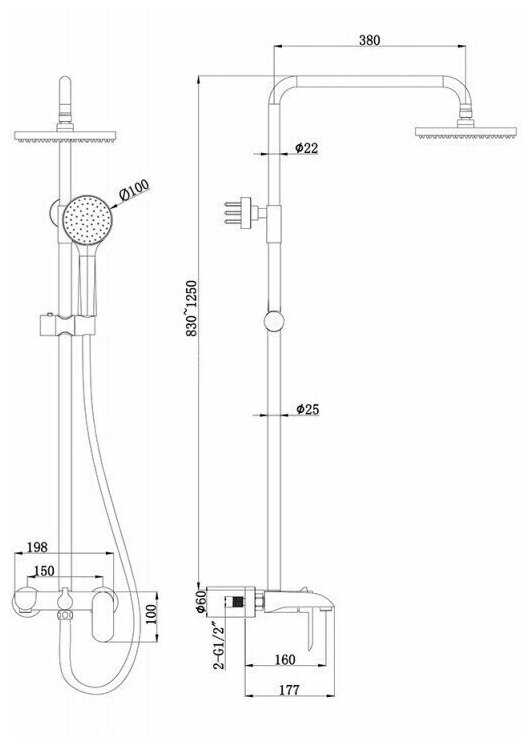 | Высота стойки для душа : | 1250 мм |