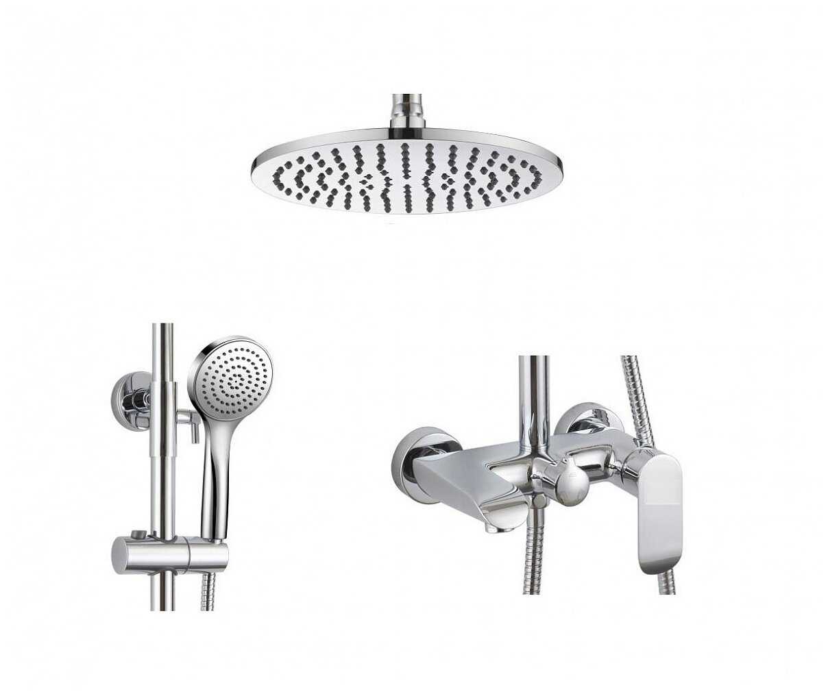 | Комплектация : | верхний душ, держатель лейки, душевая стойка, душевая штанга, излив для набора воды, лейка, переключатель потоков, ручной душ, смеситель, шланг, эксцентрик |