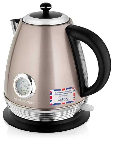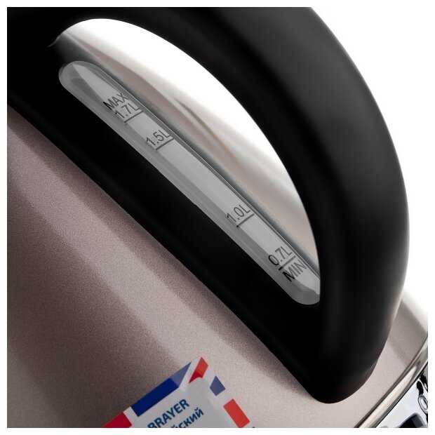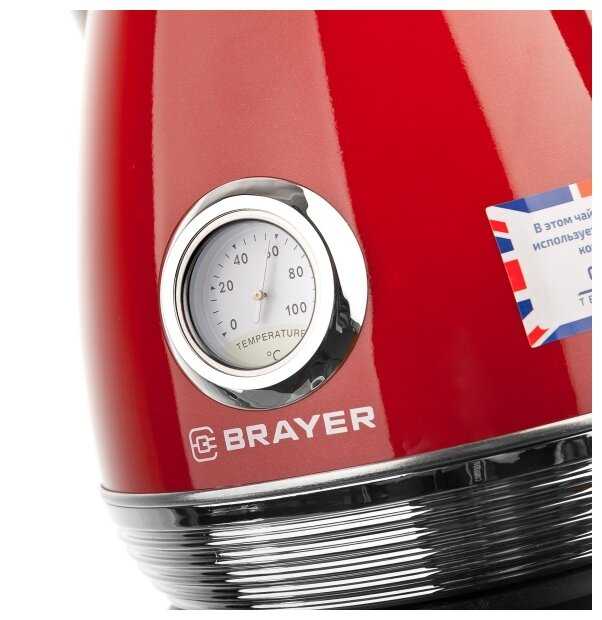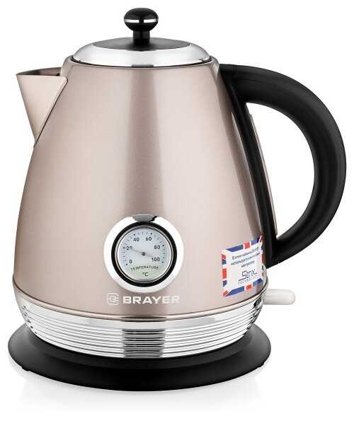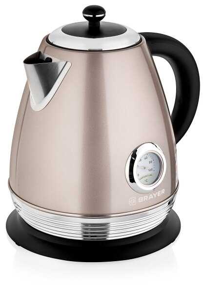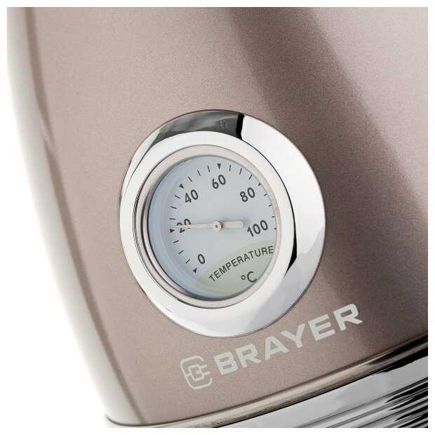 Сегодня были в днс, выбирали чайник. Попалась на глаза эта модель. Чайник металлический, сверху покрытие цветное.В описании указано цвет серый, но скорее серо-бежевый, но приятный, даже интересный. На фото он справа, слева металлик от Поларис. В сравнении Поларис 1л800мл. Браер же 1л700мл. Но! Пусть он чутка меньше, мне кажется смотрится выигрышнее. Если бы не хлипковатость крышки (возможно единичный брак/не берусь судить за всю можельную линейку) и неровности на окантовке термометра - точно бы взяла его. Тем более за 2тр в июле то 2023 года) Если бы производитель доработал немного крышку и термометр , чайник спокойно можно было продавать дороже. В целом хороший, внутри ничем не пахнет, ручка у него удобная. Если прииглянулся - идите в магазин, посмотрите и смело берите)