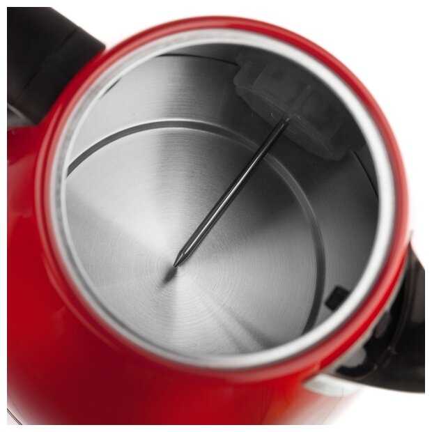 - Скрытая спираль облегчает удаление накипи, чайник легко споласкивается.