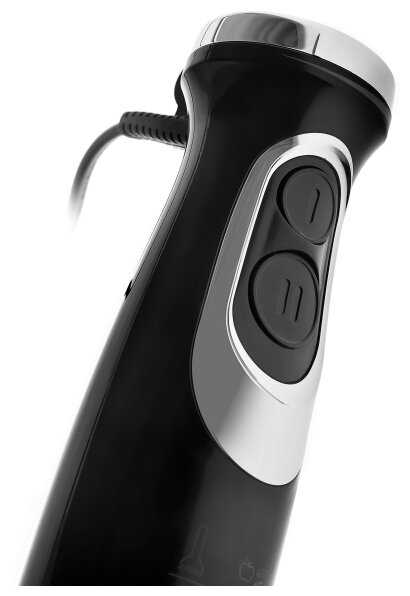 Заказала родителям в подарок именно этот блендер, потому что у меня такая же модель уже месяца три работает. Служит исправно. На вид красивый, работает тихо, пластик качественный, блендер не скользит в руке. Мерная чаша изготовлена из прозрачного как стекло пластика, удобно в ней взбивать продукты. Достаточно большая мощность, я нажимаю на первый режим и выбираю самую низкую мощность - сбивает все за 15 секунд.