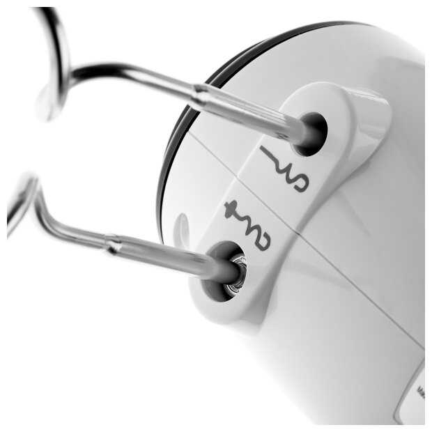 - Длинные венчики обеспечивают равномерное взбивание белков или сливок без разбрызгивания.