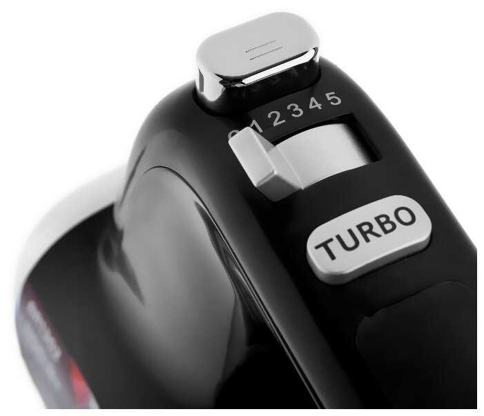 - Режим «Турбо» обеспечивает мгновенный переход на максимальную скорость, ускоряя процесс приготовления кремов и безе.