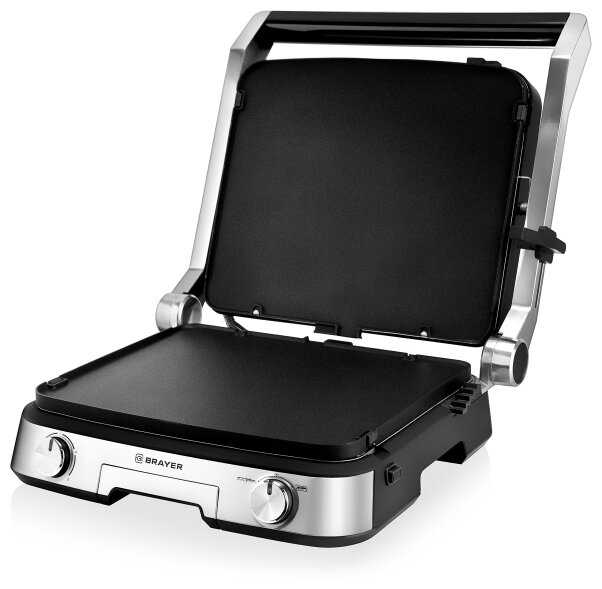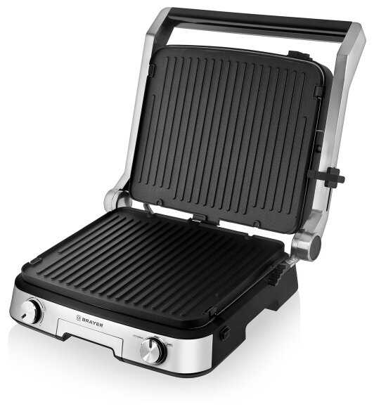 | Дополнительная информация : | Двухсторонние съёмные моющиеся пластины с антипригарным покрытием 2 поверхности: - Рифлёная - для стейков - Плоская - для блинчиков и овощей Размер пластин 31*26, 4 см Подстройка расстояния между пластинами по высоте продукта, Открытие крышки на 105-180° |