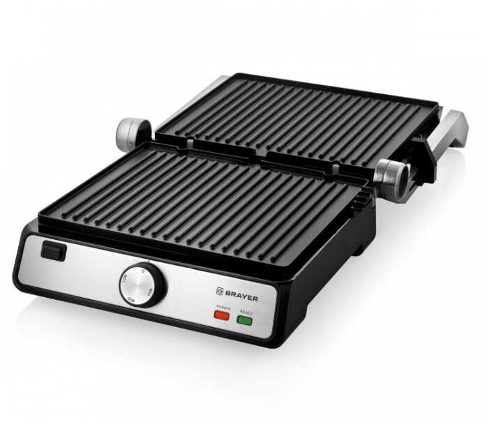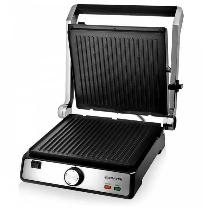 | Особенности : | антипригарное покрытие, поддон для сбора жира, регулировка высоты верхней панели, съемные пластины |