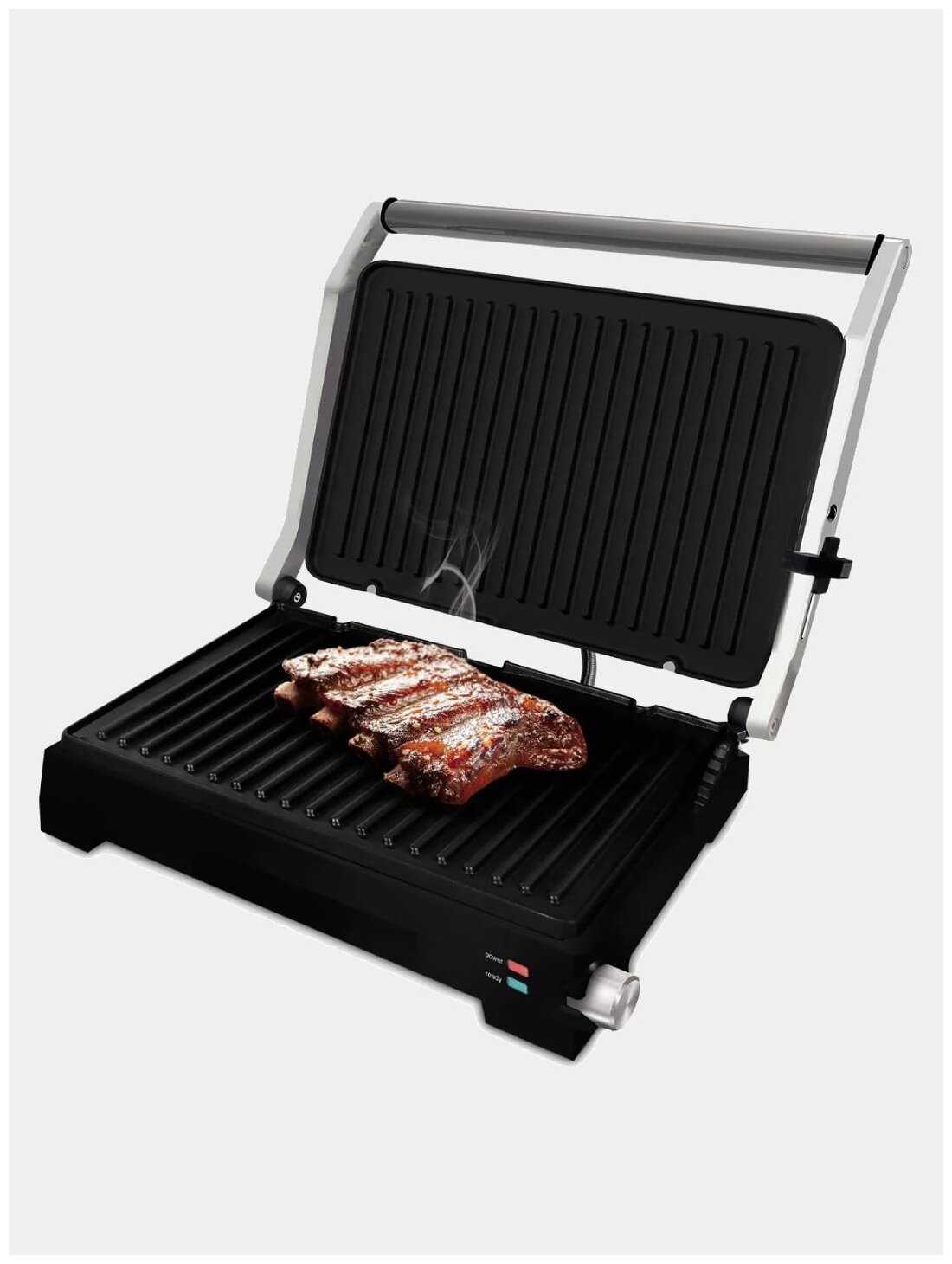 - + Отлично жарит , раскладывается на 180 градусов , очень большая поверхность жарки