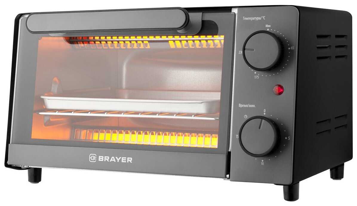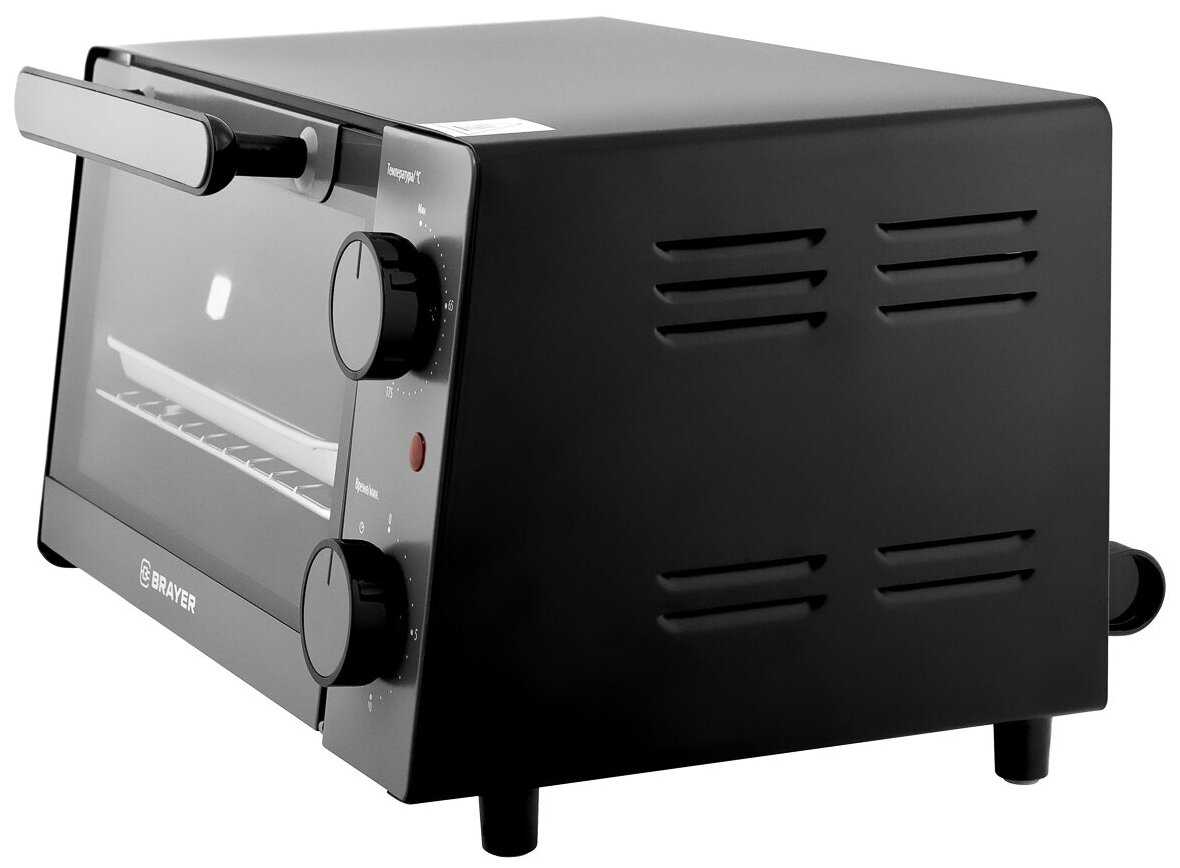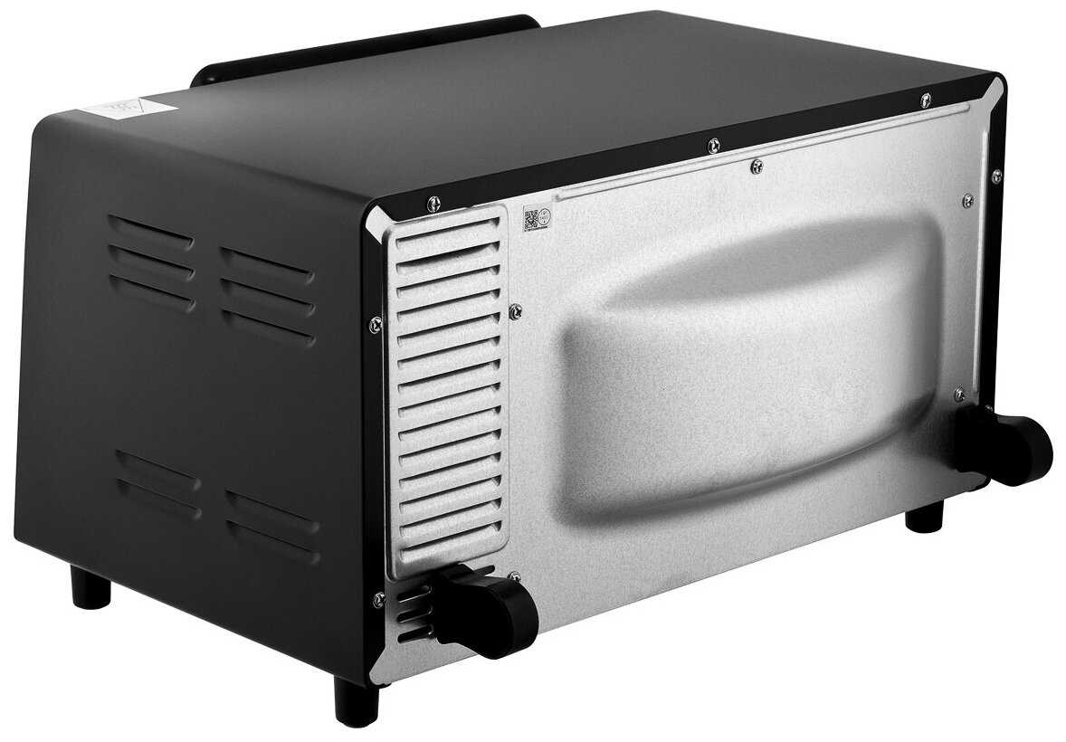 - + Мини-печь оптимально вписывается в малогабаритную кухню. Объем ее камеры составляет 9 л - этого достаточно, чтобы готовить полноценные блюда на семью из нескольких человек.