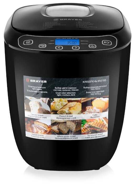 - Достаточно программ для разных типов хлеба, теста, выпечки, включая ручную настройку времени, размера буханки (700 г, 1 кг) и цвета корочки.