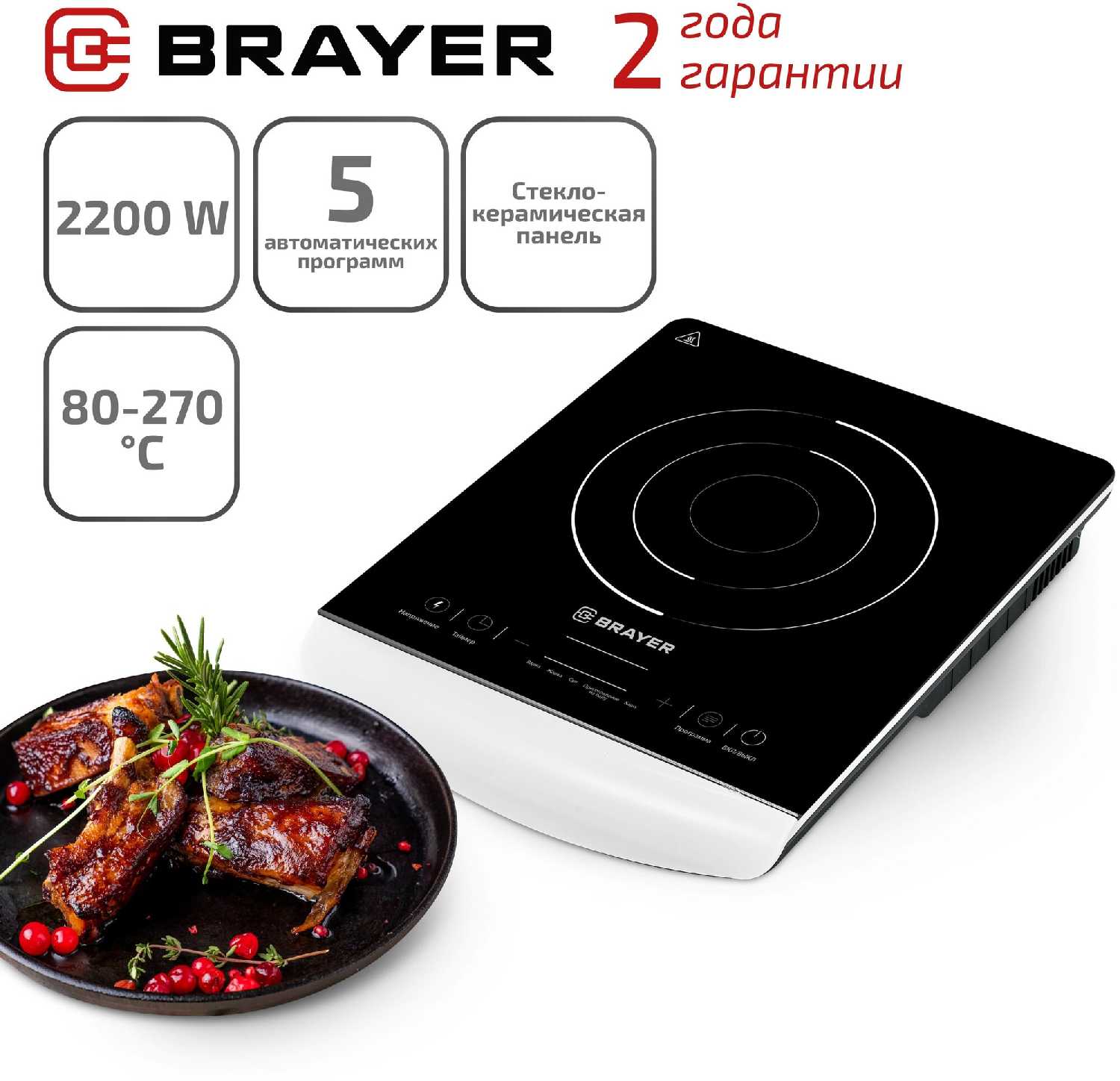 - + Плита BR2801 мне очень понравилась так как это более совешенная техника для кухни Онаделает пищу вкуснее удобнее и занимает мало времени для приготовления мяся морепродуктов буквально за несколько минут и все готово На панели естьподсказки которые делают применение этой плиты простыми и удобными это более современный и удобный придмет для нашей кухни Вот раньше были плиты с комфорками блинами потом плита с панелью стеклокерамической которая более удобная в уходе готовки продуктов а индукционная плита это еще шаг вперед в приготовлении пищи на нашей кухне на современном этапе нашей жизни