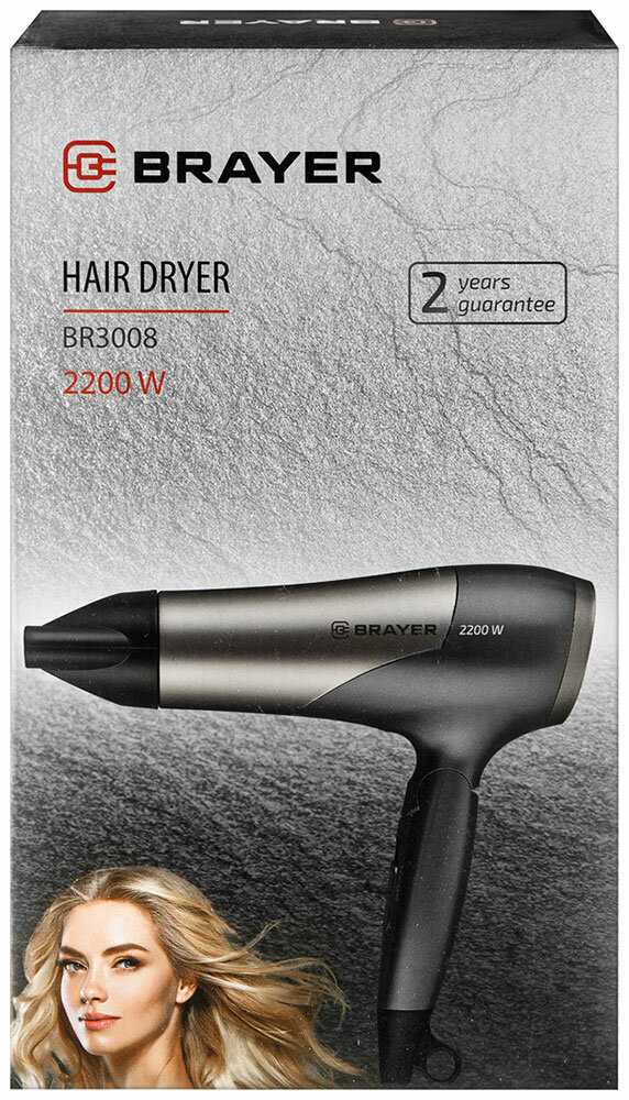 Дополнительная информация : | Максимальная мощность 2200 Вт 2 температурных режима Режим подачи холодного воздуха Концентратор Складная ручка Cъемный фильтр Петелька для подвешивания Электропитание 220-240 В, ~50 Гц |