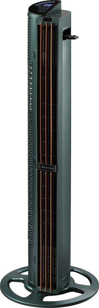 Высокий,очень компактный.За счёт конструкции( не вращается,просто поворачивает шторки) тихий. - - не заметила