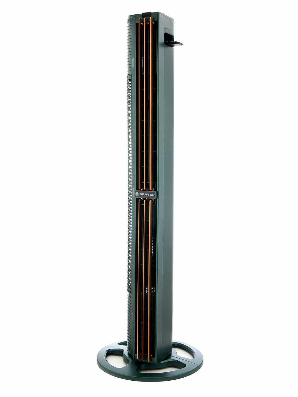 Высокий,очень компактный.За счёт конструкции( не вращается,просто поворачивает шторки) тихий. - - не заметила